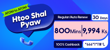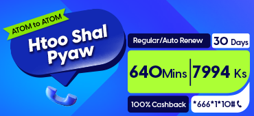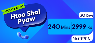 Introducing "Htoo Shal Pyaw" - ATOM to ATOM voice call packages to help you connect more with best price. Whether you're catching up with loved ones or collaborating with colleagues, these voice call packages will be the best choice for you.