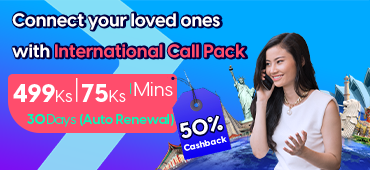 All ATOM prepaid subscribers can enjoy special Int’l voice call pack of “Monthly Int’l Call” with 75Ks per min (exclusive of TAX)to call 9 destinations (Thailand, Malaysia, Singapore, South Korea, India, USA, Canada, Bangladesh and Australia) (exclusive of Premium and Satellite) with the auto renewal subscriptions fee of 499 Ks valid 30 days (inclusive of TAX).