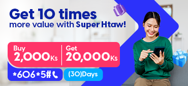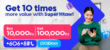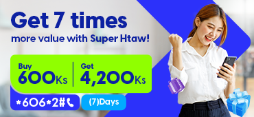 Super Htaw will increase 10 times (or) 7 times (or) 6 times to your phone balance depending on your choice. That can be used for internet data browsing, calls, and SMS to any local number. You may not be required to purchase any other package as Super Htaw pack are allowed for worry-free mobile all in one packs.