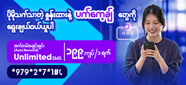 အကန့်အသတ်မရှိ စာတိုပို့ပက်ကေ့ချ်ကို တစ်ကြိမ်ဝယ်ယူထားပြီးပါက ည ၁၂ နာရီတွင် ဖုန်းလက်ကျန်ငွေမှ ၁၉၉ ကျပ်ကို အလိုအလျောက်နှုတ်ယူပြီး သက်တမ်းတိုးပေးသွားမည်ဖြစ်ပါသည်။ သက်တမ်းတိုးပြီးပါက စာတိုပက်ကေ့ချ် ဝယ်ယူမှုအောင်မြင်ကြောင်း စာတိုကို လက်ခံရရှိမည်ဖြစ်ပါသည်။