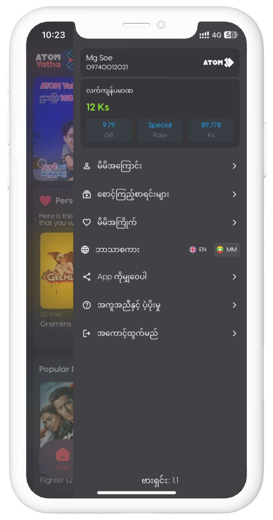 “Guest User” အနေနဲ့ အက်တမ် ရသ Application ကို အသုံးပြုရင်တော့ Free ပေးကြည့်ထားတဲ့ ဗွီဒီယိုနဲ့ ဖျော်ဖြေရေးအစီအစဥ်များကို အက်တမ်မိုဘိုင်းဒေတာနဲ့သာမက Wi-Fi နှင့် အခြား Operator မိုဘိုင်းဒေတာနဲ့ပါ ကြည့်ရှုနိုင်ပါတယ်။