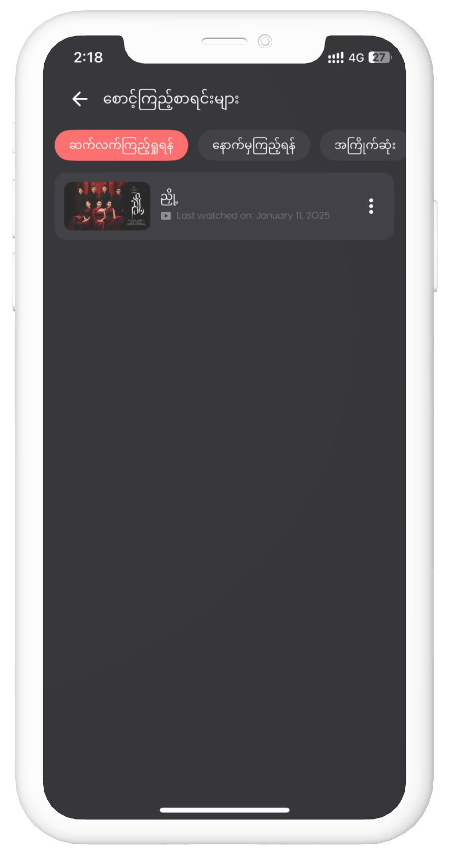 မိမိသိမ်းထားသောဇာတ်လမ်းများကို "စောင့်ကြည့်စာရင်းများ" အောက်တွင်ပြန်လည်ကြည့်ရှုနိုင်ပါသည်။