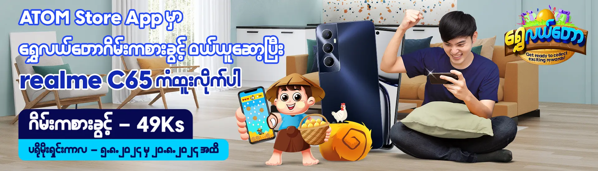 realme C65 ကံထူးသူ(၄)ယောက်အား အက်တမ်မှ ပရိုမိုးရှင်းပြီးဆုံးသည့် ဩဂုတ်လနောက်ဆုံးအပါတ်တွင် ကြေညာမည်ဖြစ်ပါသည်။