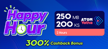 ၃၀၀% ပြန်အမ်းငွေဘောနက်စ်ငွေကို ဒေတာ၊ အက်တမ်ဖုန်းအချင်းချင်းခေါ်ဆိုမှုနှင့် စာတိုပေးပို့မှုများတွင် သုံးသလောက်ပေးနှုန်းထားဖြင့်သုံးစွဲနိုင်ပါသည်။ ၂နာရီသက်တမ်းဖြစ်ပါတယ်