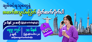 ၅၀% ပြန်အမ်းငွေဘောနပ်စ်(အက်တမ်အချင်းချင်းဖုန်းခေါ်ဆိုမှု၊စာတိုပေးပို့မှုနှင့်သုံးသလောက်ပေးဒေတာအသုံးပြုမှု) ရယူနိုင်ပါပြီ။