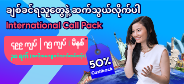 ၅၀% ပြန်အမ်းငွေဘောနပ်စ်(အက်တမ်အချင်းချင်းဖုန်းခေါ်ဆိုမှု၊စာတိုပေးပို့မှုနှင့်သုံးသလောက်ပေးဒေတာအသုံးပြုမှု) ရယူနိုင်ပါပြီ။