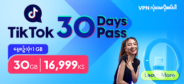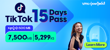 TikTok ကိုအားလပ်ချိန်အသုံးပြုဖို့ အတွက် အတန်ဆုံး 500MB (သို့) 1GB ဒေတာပက်ခ်များ ကို ၁၅ရက်စာ (သို့) ၃၀ရက်စာ ရွေးချယ်ဝယ်ယူနိုင်ပါပြီ။